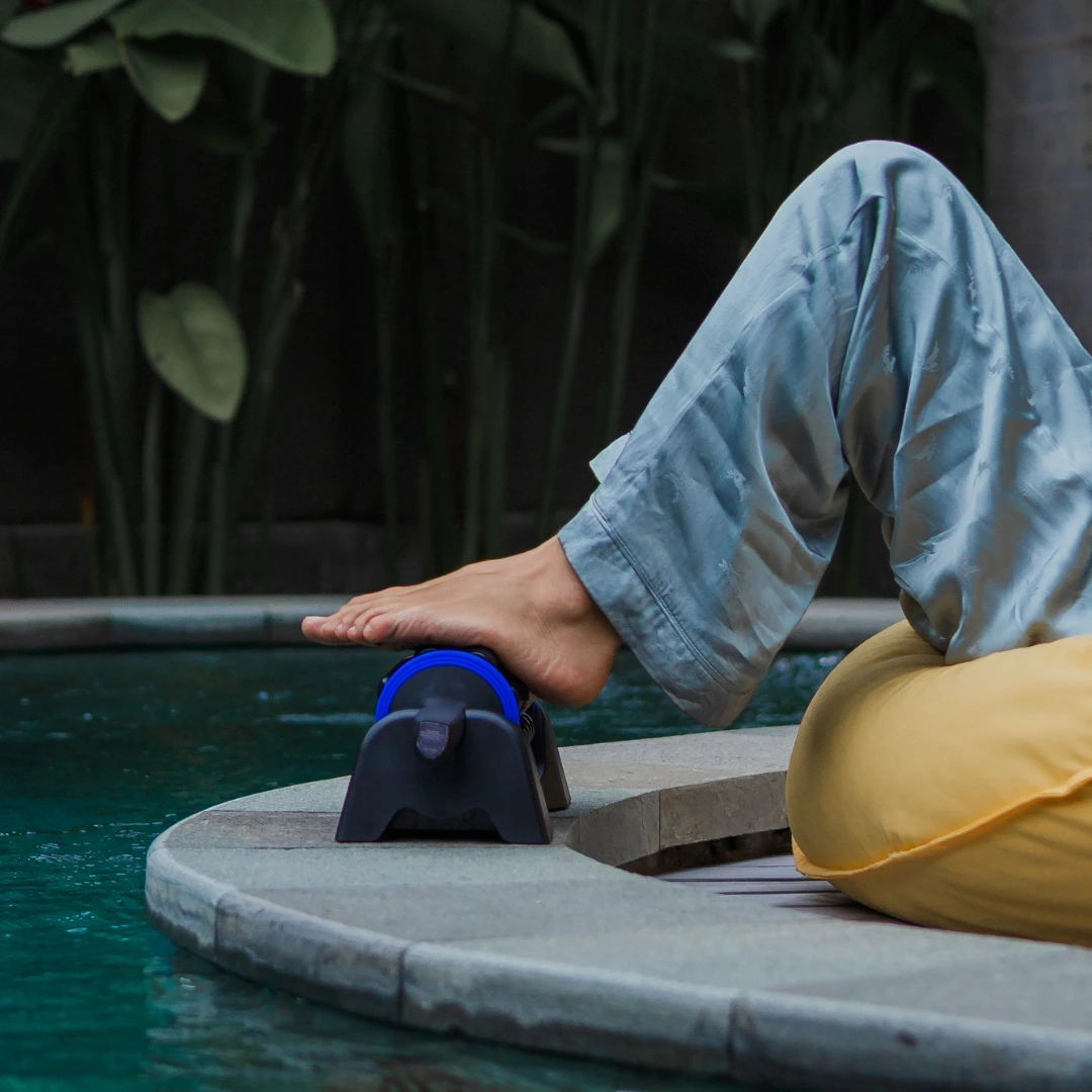 Use it seated, standing, or lying down — enjoy full-body treatment without assistance. (130lbs max force.) Doubles as a convenient storage stand.